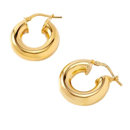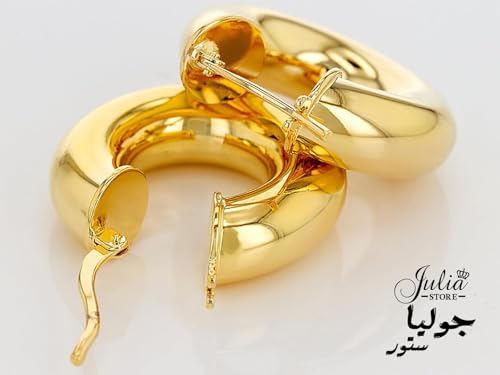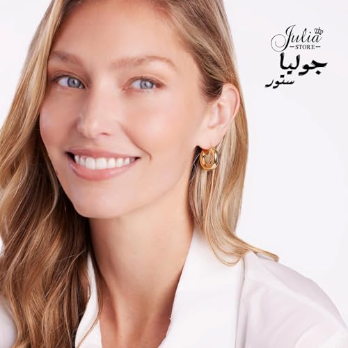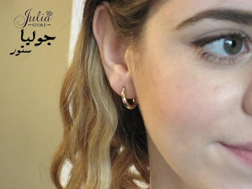 Julia Store - حلقان حلقية دائرية / بيضاوية مطلية بالذهب عيار 18 قيراط من جوليا ستور، لا تسبب أي حساسية، حلقان حلقية أنيقة وخفيفة الوزن مزودة بزر كبس علوي للنساء