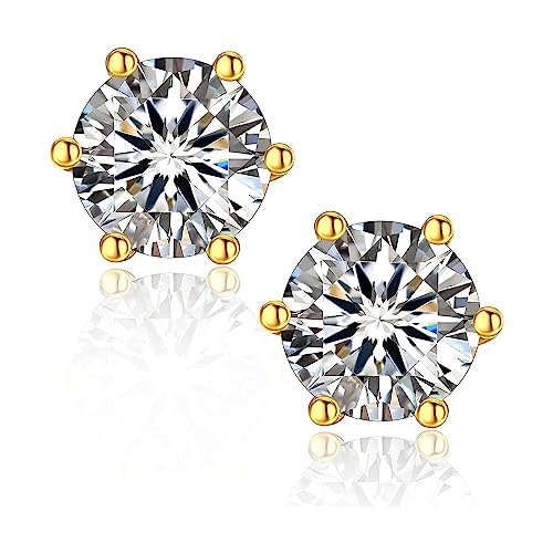 Generic - اقراط سوليتير مرصعة بالزركونيا المكعب الشفاف عالي الجودة مطلية بالذهب عيار 18 قيراط من الستانلس ستيل 316L للنساء والرجال جوليا ستور خليط معدني صلب زركونيا مكعب متعدد الالوان