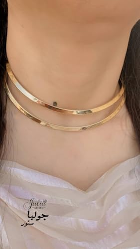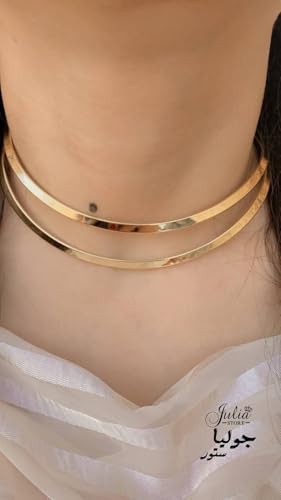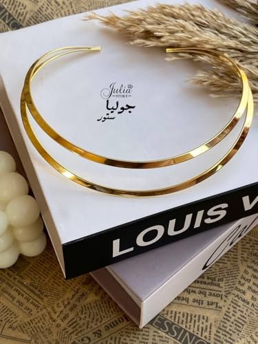 Julia Store - قلادة شوكر من الستانلس ستيل المطلي بالذهب عيار 18 قيراط جوليا ستور بتصميم طبقات للاميرة ذهبية للهالوين للنساء كود 3