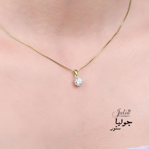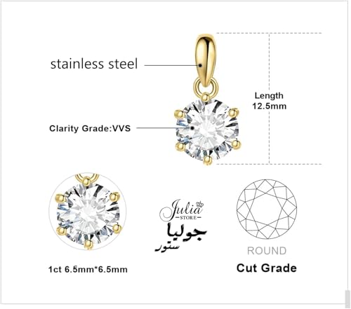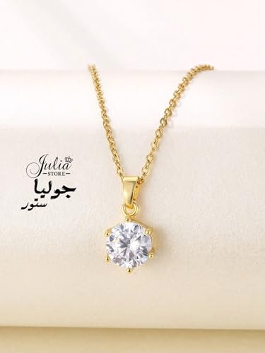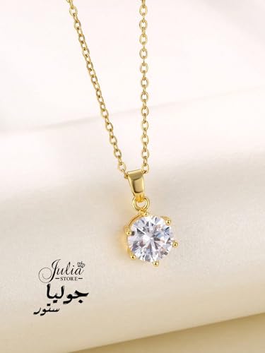 Julia Store - قلادة دائرية من جوليا ستور 3 قيراط مرصعة بحجر زركونيا مكعب سوليتير مثل الحب الابدي عصرية فاخرة انيقة للنساء الستانلس ستيل المطلي بالذهب عيار 18 وماس مقلد كلاسيكي