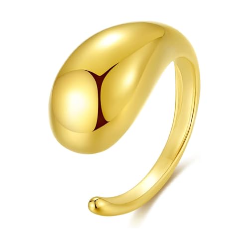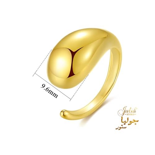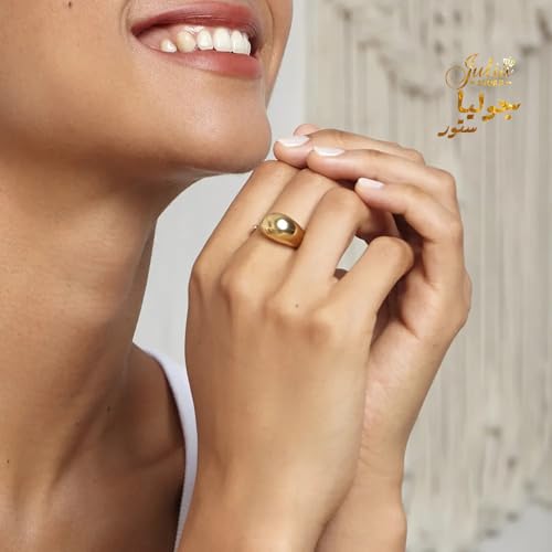 Julia Store - جوليا ستور ستانلس ستيل مطلي بالذهب عيار 18 قيراط قابل للتعديل مفتوح قبة مكتنزة عصرية انيقة الاكثر مبيعا خواتم جريئة قابلة للتكديس مجوهرات بسيطة للنساء