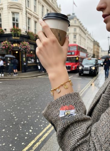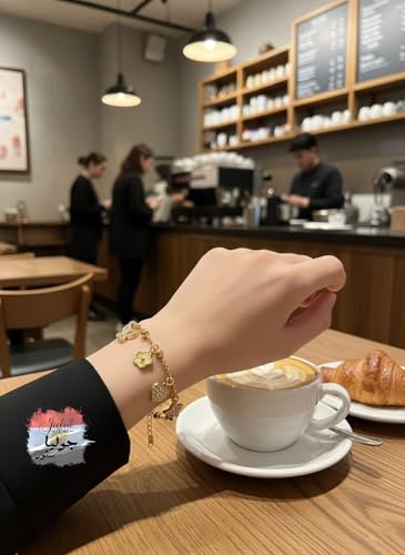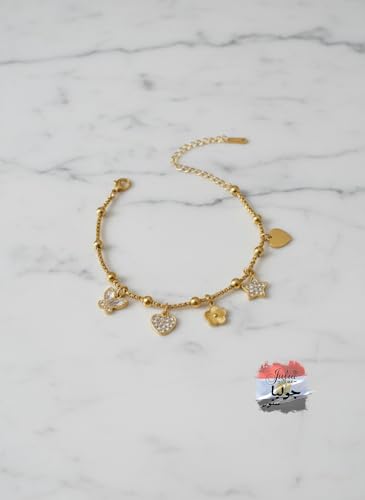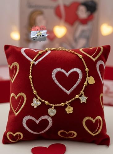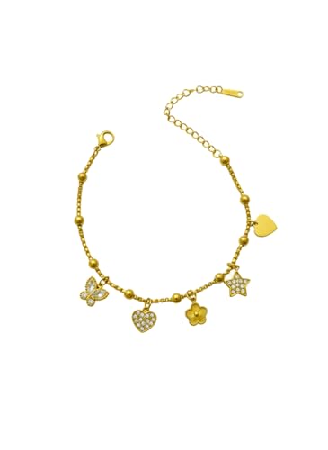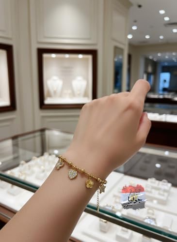 Julia Store - سوار من الستانلس ستيل المطلي بالذهب عيار 18 قيراط من جوليا ستور بتصميم جمالي رائع وعصري وسميك على شكل قلب وبرسيم ونجمة وفراشة للنساء، اساور مجوهرات هدايا للنساء