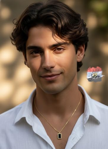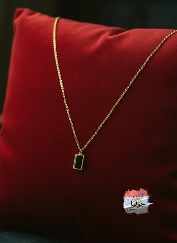 Julia Store - قلادة من الستانلس ستيل المطلي بالذهب عيار 18 قيراط من جوليا ستور بتصميم جمالي فاخر ورومانسي وانيق وانيق، قلادة انيقة وعصرية بتصميم بسيط وانيق عتيق مرصع بالعقيق اليماني الاسود للرجال