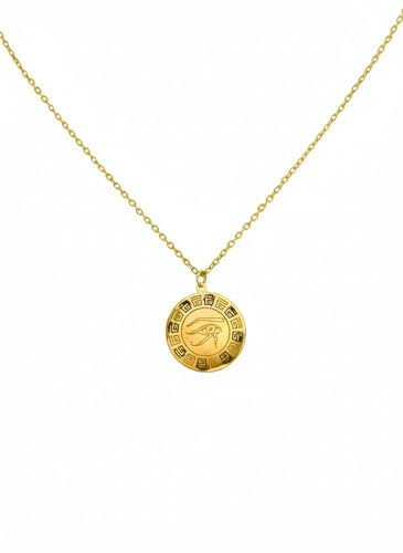 Julia Store - قلادة من الستانلس ستيل المطلي بالذهب عيار 18 قيراط من جوليا ستور، تصميم جمالي وفاخر ورومانسي انيق، ذهبي لطيف، بتصميم بسيط وعصري وانيق، قلادة مفاتيح بتصميم حورس مصري عتيق