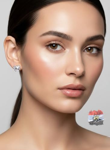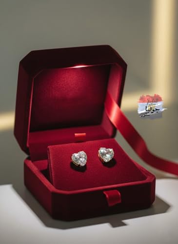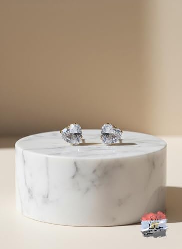 Julia Store - اقراط من الستانلس ستيل المطلي بالذهب عيار 18 قيراط من جوليا ستور بتصميم جمالي فاخر ورومانسي انيق وعصري وانيق وكلاسيكي مرصع بحب زركونيا مكعب على شكل قلب، هدية مجوهرات