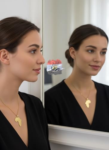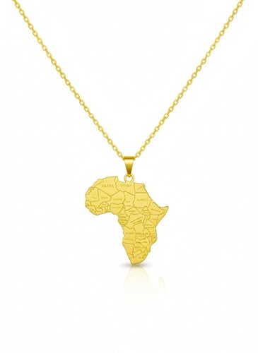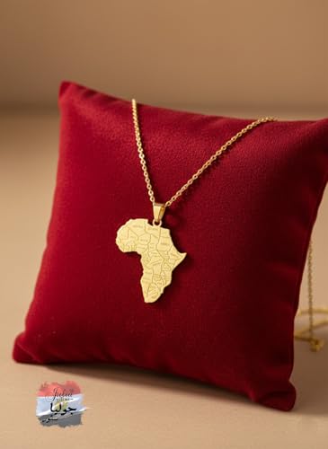 Julia Store - سلسلة من فولاذ مقاوم للصدأ مطلي بطلاء ذهبي عيار 18 قيراط بدلاية بتصميم جمالي عصري بسيط على شكل قارة إفريقية كبيرة وخرائط البلدان من جوليا ستور، هدية مجوهرات للنساء