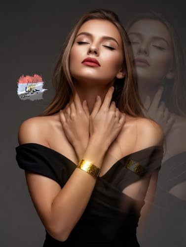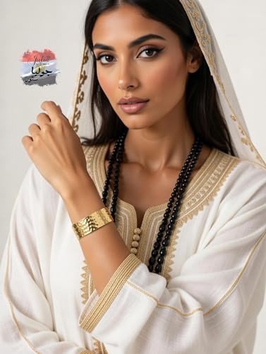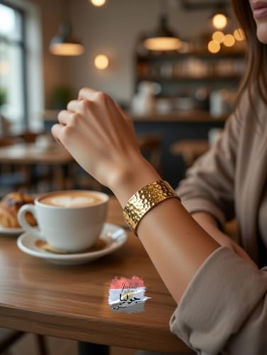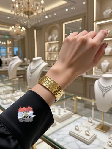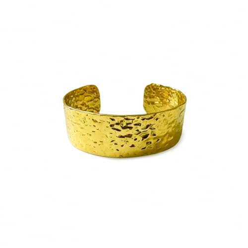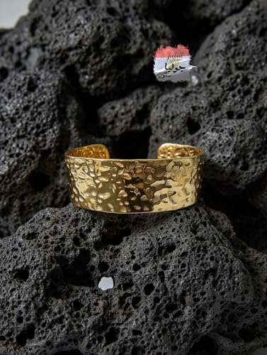 Julia Store - أساور عريضة من الفولاذ المقاوم للصدأ المطلي بالذهب عيار 18 قيراط من جوليا ستور، أساور مفتوحة بتصميم بوهيمي عتيق غير منتظم، سوار سميك للذراع، مجوهرات ذهبية مميزة