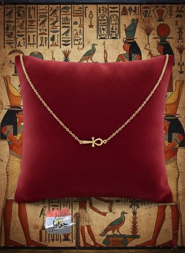 Julia Store - قلادة من الستانلس ستيل المطلي بالذهب عيار 18 قيراط من جوليا ستور بتصميم جمالي وفاخر وعتيق عصري لطيف على شكل مفتاح الحياة في مصر القديمة، قلادة عنخ مفتاح فرعون للجنسين هدية مجوهرات