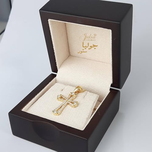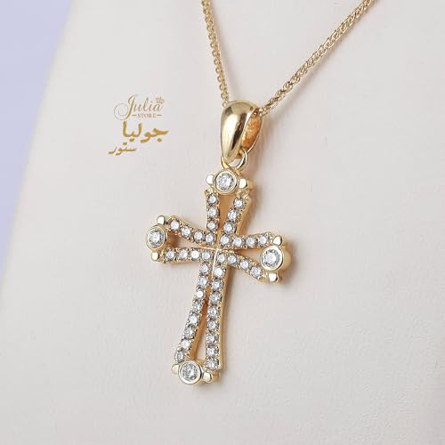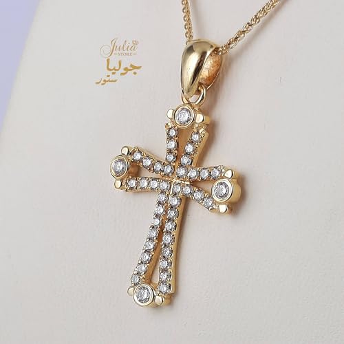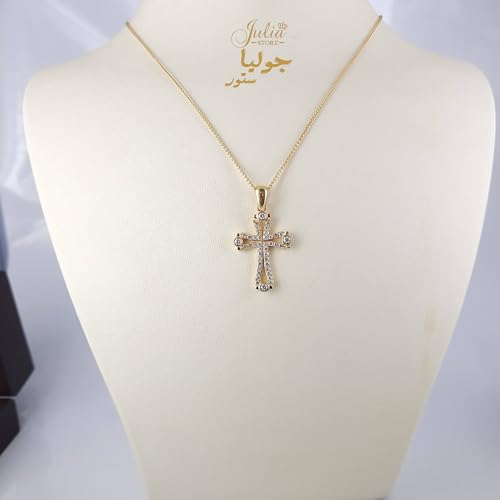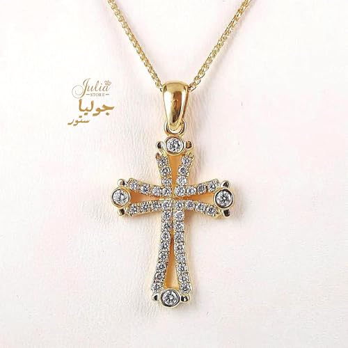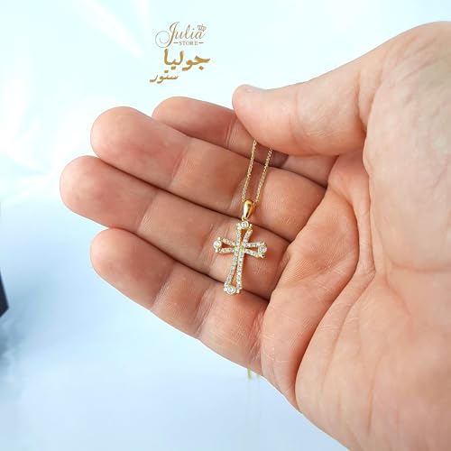 Julia Store - عقد ستانلس ستيل مطلي بالذهب عيار 18 قيراط ومرصع بالزركونيا المكعب النمساوي الايمان والصليب الكاثوليكي الارثوذكسي العصري للنساء والرجال من جوليا ستور