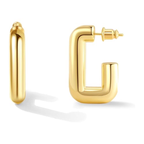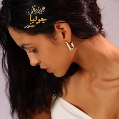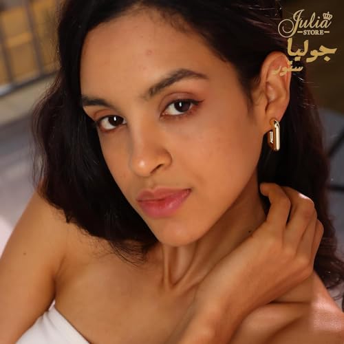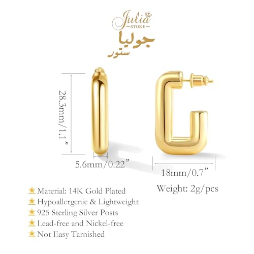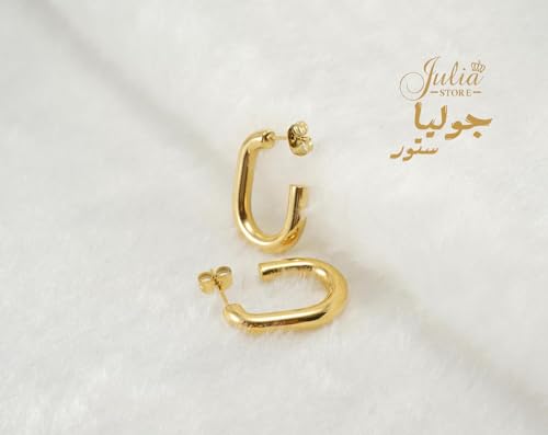 Julia Store - اقراط حلقية مطلية بالذهب عيار 18 قيراط من الستانلس ستيل الافضل مبيعا للنساء ، مكتنزة لا تسبب الحساسية مفتوحة خفيفة الوزن عصرية جوليا ستور