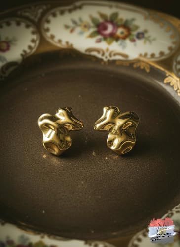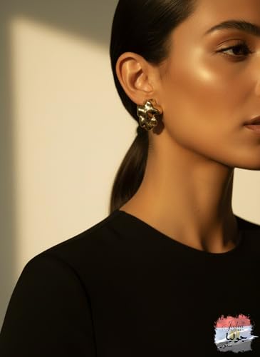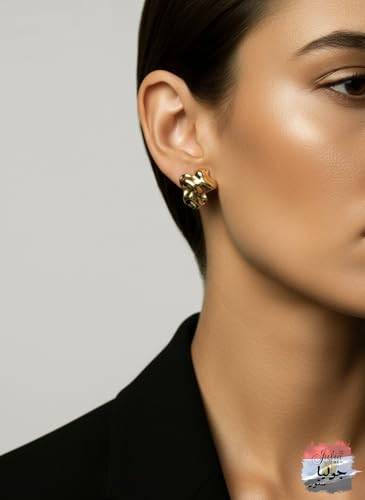 Julia Store - اقراط من الستانلس ستيل المطلي بالذهب عيار 18 قيراط من جوليا ستور، اقراط كبيرة مكتنزة لا تفقد بريقها بتصميم هندسي بسيط وعصري جمالي رائع لطيف وكبير، اقراط معدنية على شكل قبة للنساء هدية مجوهرات