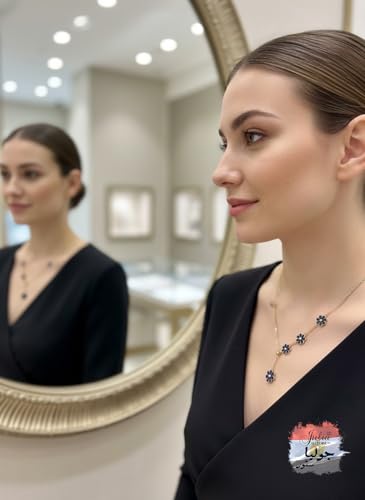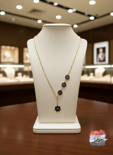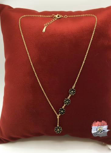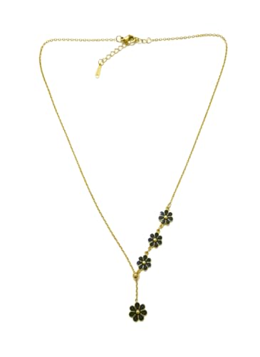 Julia Store - عقد بقلادة من الستانلس ستيل المطلي بالذهب عيار 18 قيراط بتصميم زهور سوداء من جوليا ستور، هدية رائعة وعصرية وعصرية للحب والصداقة