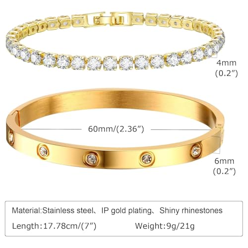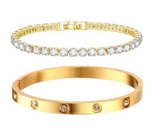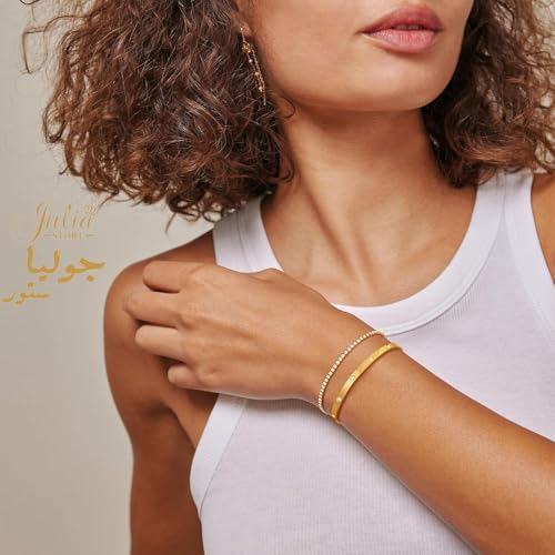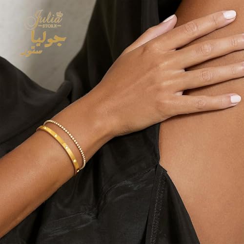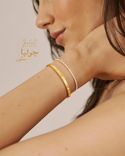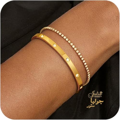 Julia Store - اساور ستانلس ستيل مطلية بالذهب عيار 18 قيراط - قطعتين ومرصعة بالزركونيا المكعبة من جوليا ستور للنساء