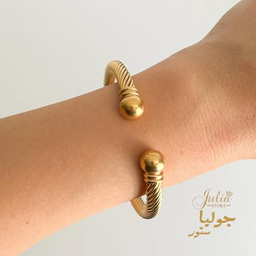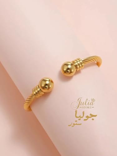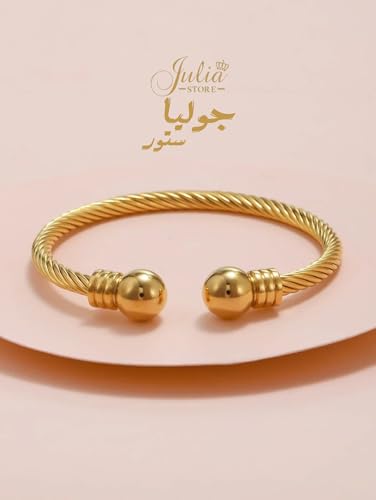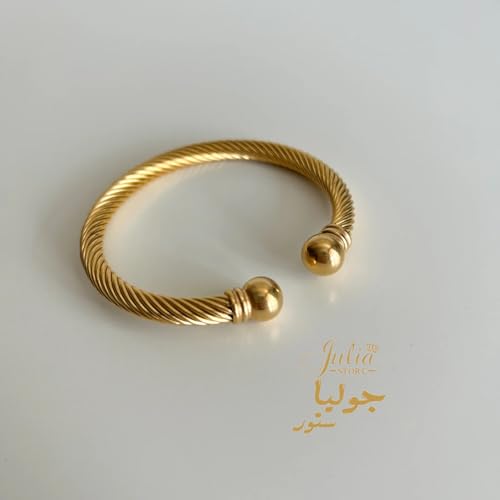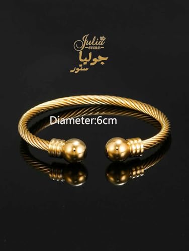 Julia Store - سوار سلكي من الستانلس ستيل مطلي بالذهب عيار 18 قيراط للجنسين جوليا ستور انيق قابل للتعديل مجوهرات هدية عيد ميلاد