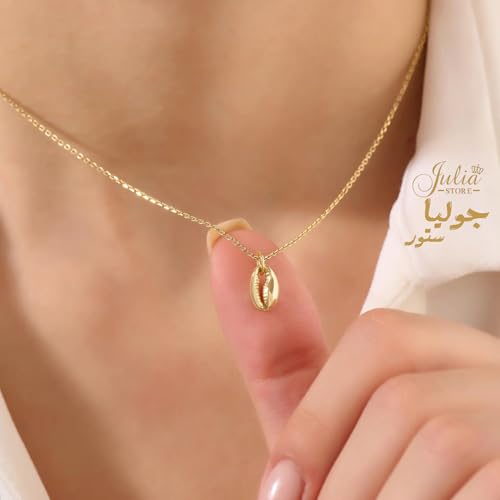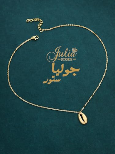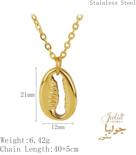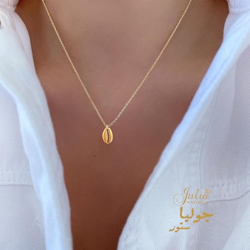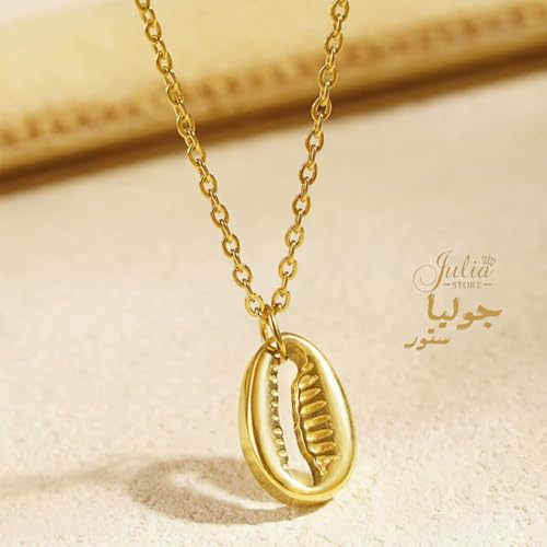 Julia Store - قلادة من الستانلس ستيل المطلي بالذهب عيار 18 قيراط من جوليا ستور، بتصميم عصري بسيط وانيق على شكل صدفة بحر صغيرة رقيقة على شكل حبوب القهوة، مجوهرات للشاطئ، هدية