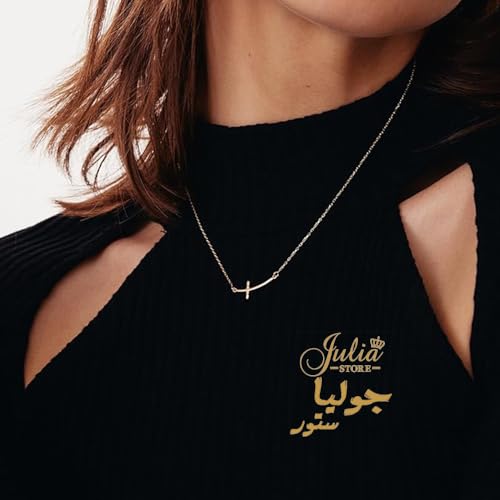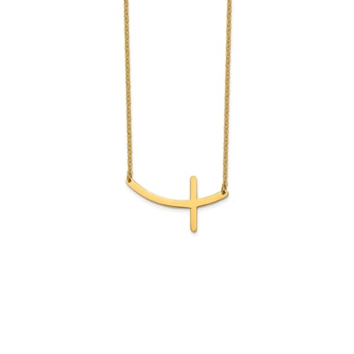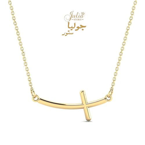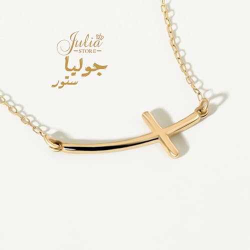 Julia Store - سلسلة متقاطعة منحنية من الستانلس ستيل مطلية بالذهب الخالص عيار 14 قيراط مع رولو بتصميم صليب منحني للنساء جوليا ستور