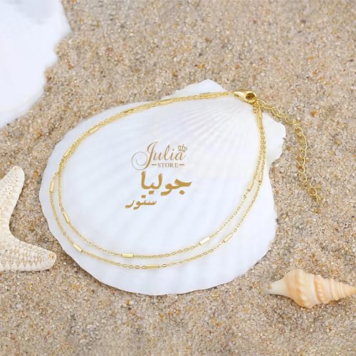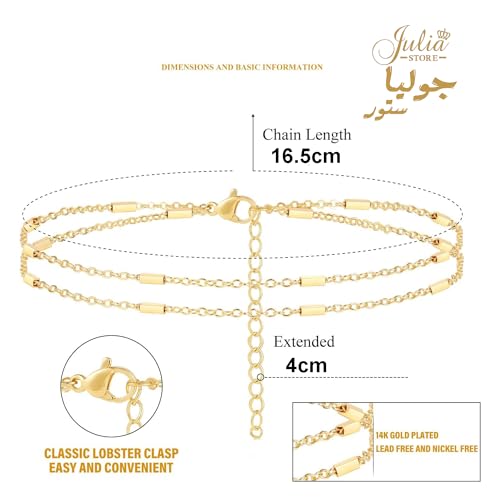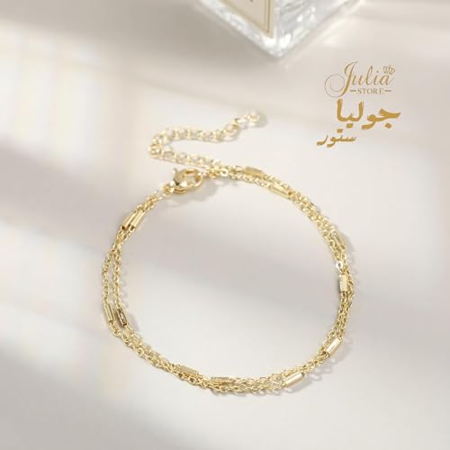 Julia Store - إسورة من متجر جوليا للنساء، مصنوعة من الستانلس ستيل، بلون ذهبي وتصميم عصري، مقاس 16.5 سم