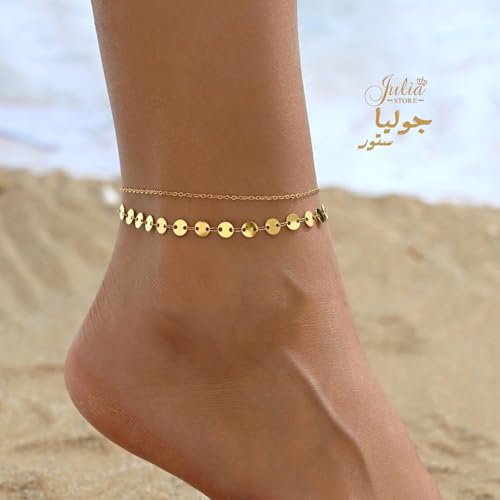 Julia Store - إسورة من متجر جوليا للنساء، مصنوعة من الستانلس ستيل، بلون ذهبي وتصميم عصري، مقاس موحد