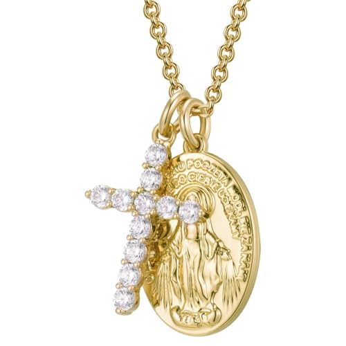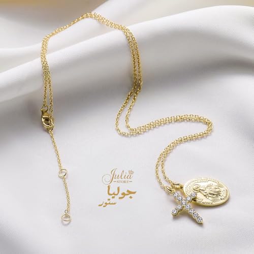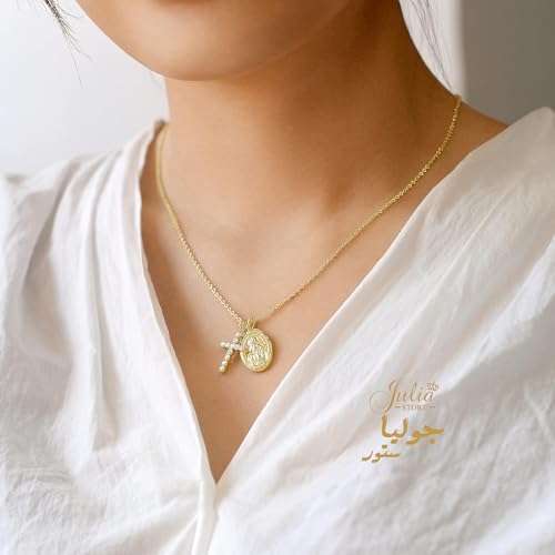 Julia Store - قلادة انيقة من الستانلس ستيل المطلي بالذهب عيار 18 قيراط للنساء من جوليا ستور، فيرجن دي غوادالوبي، سلسلة قلادات متعددة الطبقات لا تفقد بريقها