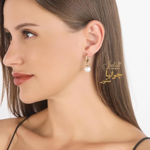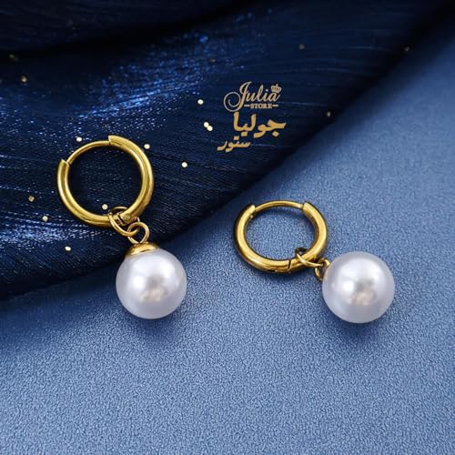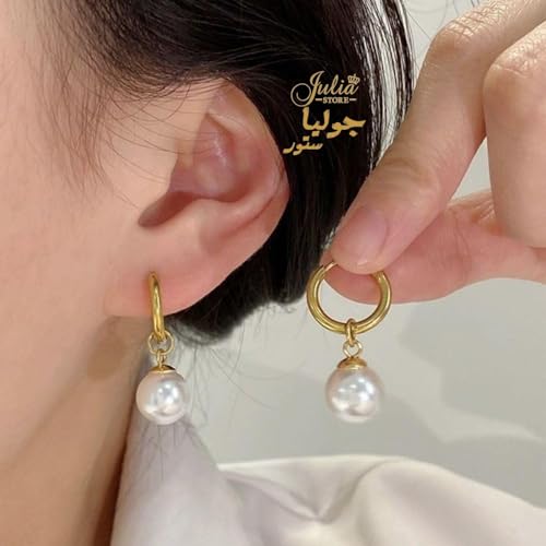 Julia Store - اقراط حلقية عصرية من الستانلس ستيل المطلي بالذهب عيار 18 قيراط للنساء جوليا ستور