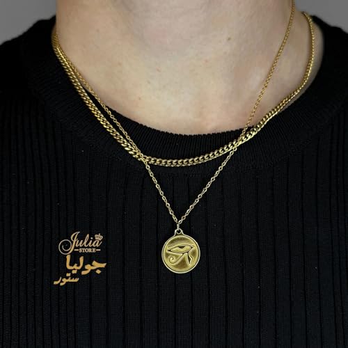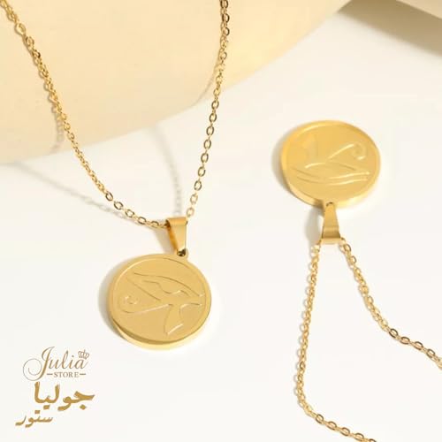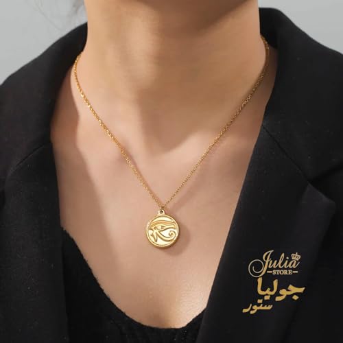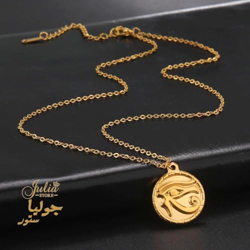 Julia Store - قلادة بدلاية عين حورس المصرية القديمة من الستانلس ستيل المطلي بالذهب عيار 18 قيراط من جوليا ستور