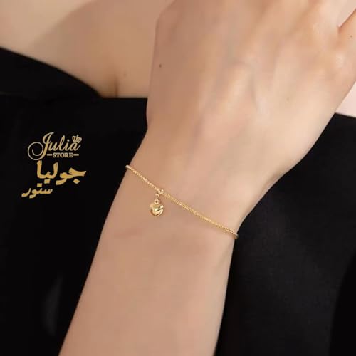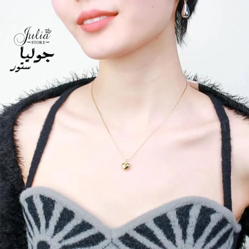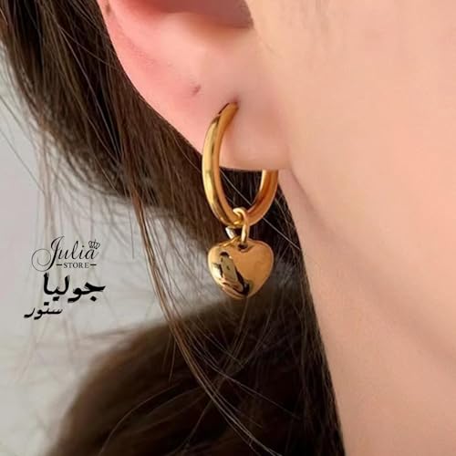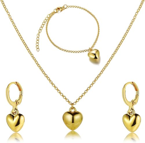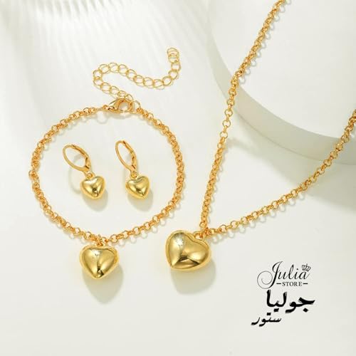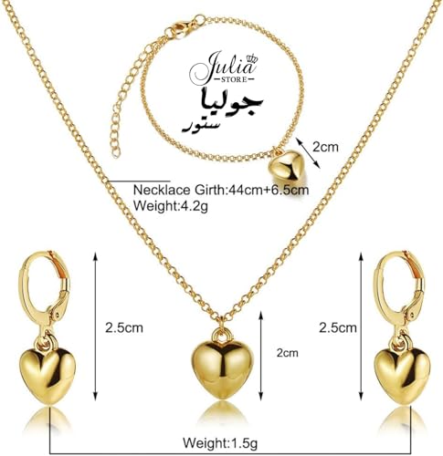 Julia Store - اقراط متدلية على شكل قلب من الستانلس ستيل مطلية بالذهب عيار 18 قيراط من جوليا ستور، قلادة انيقة مطلية بالذهب، سوار حلقي قابل للتعديل، هدية مجوهرات للنساء، مجموعة من 3 قطع