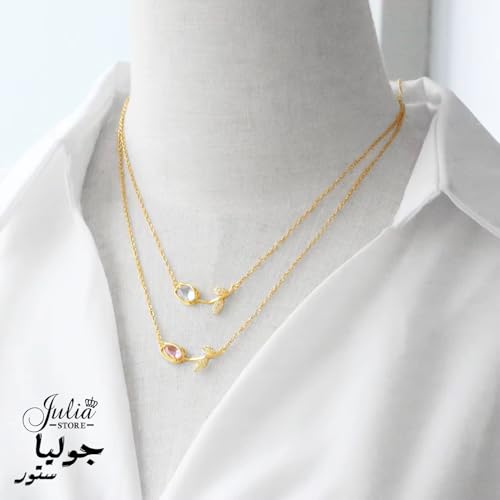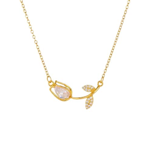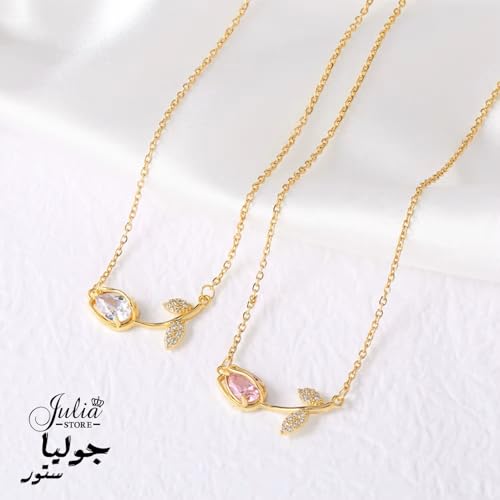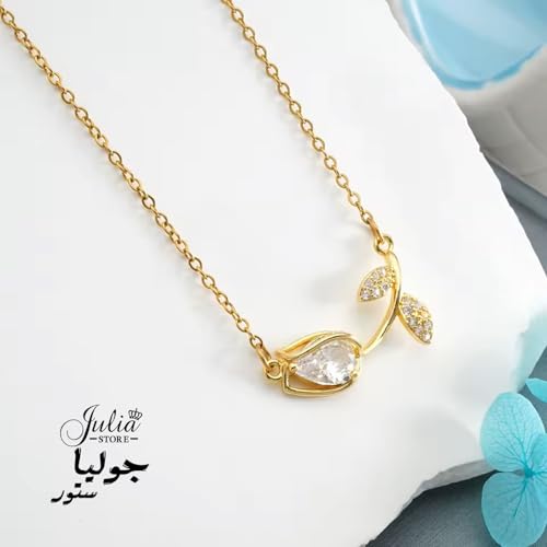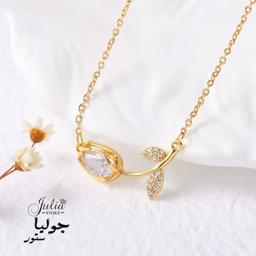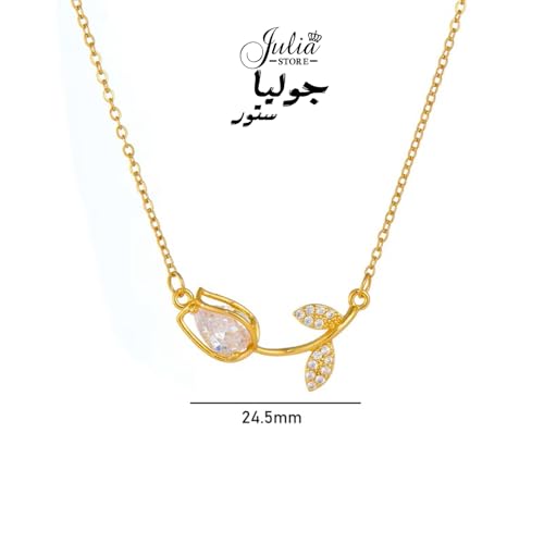 Julia Store - قلادة نسائية، مطلية ذهب 18 قيراط، فولاذ مقاوم للصدأ، بدلاية وزهرة توليب من الكريستال، طوق ضيق، من جوليا ستور