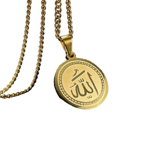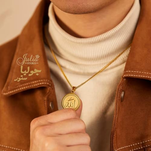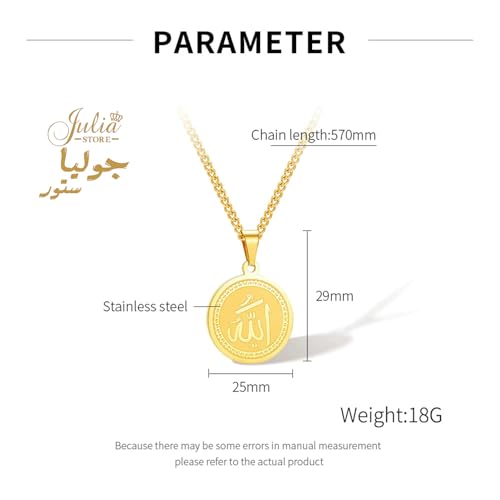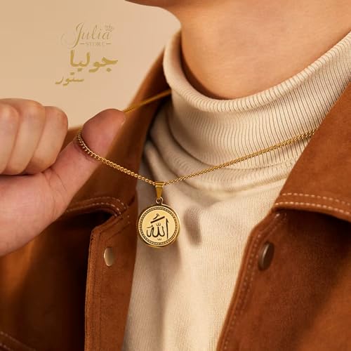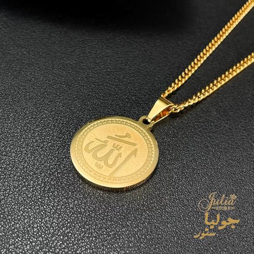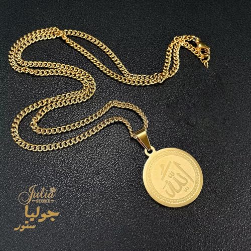 Julia Store - قلادة من الستانلس ستيل المطلي بالذهب عيار 18 قيراط من جوليا ستور، قلادة اسلامية بتصميم كلمة الله على شكل عملة معدنية من الستانلس ستيل بدلاية على شكل الله، قلادة عصرية انيقة عتيقة، مجوهرات اسلامية
