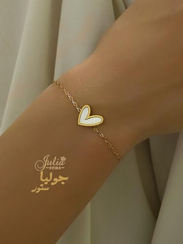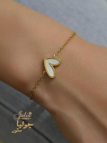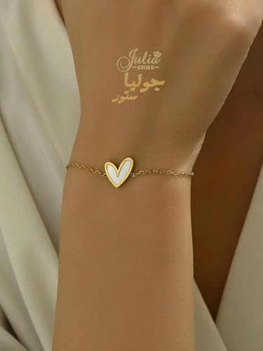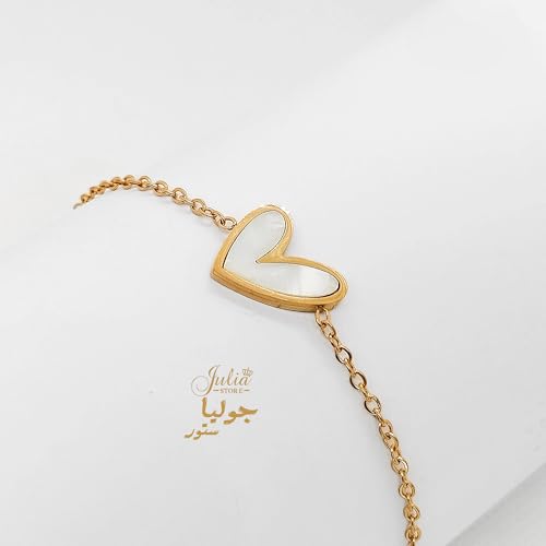 Julia Store - سوار من الستانلس ستيل المطلي بالذهب عيار 18 قيراط من جوليا ستور، سوار انيق فاخر وعصري بدلاية على شكل قلب على شكل صدف بحري، سوار سلسلة انيق وفاخر للنساء والفتيات المراهقات