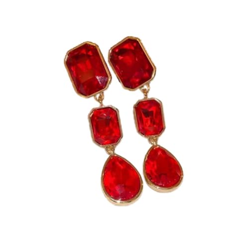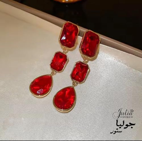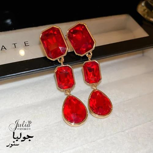 Julia Store - اقراط متدلية من الستانلس ستيل المطلي بالذهب عيار 18 قيراط من جوليا ستور، مرصعة باحجار الراين الكريستالية غير المنتظمة بتصميم هندسي متدلي، مجوهرات للنساء