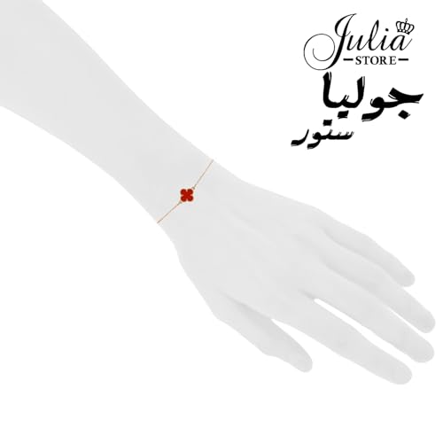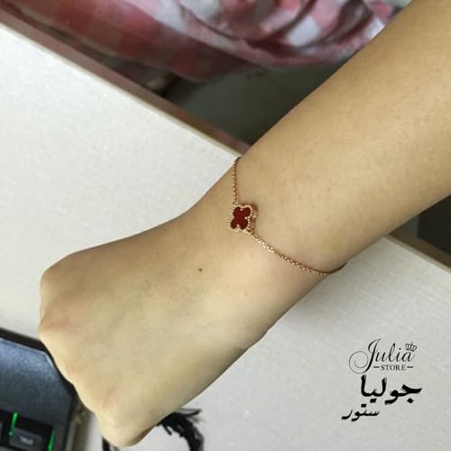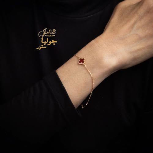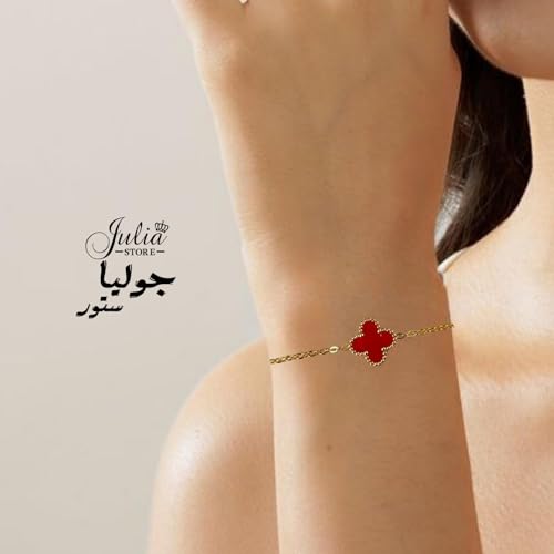 Julia Store - سوار مطلي بالذهب عيار 18 قيراط بتصميم عصري لاكي لأربع أوراق شجر وعلى شكل صدف أبيض برسيم للنساء، مجوهرات للنساء من الفولاذ المقاوم للصدأ من جوليا ستور، أحمر