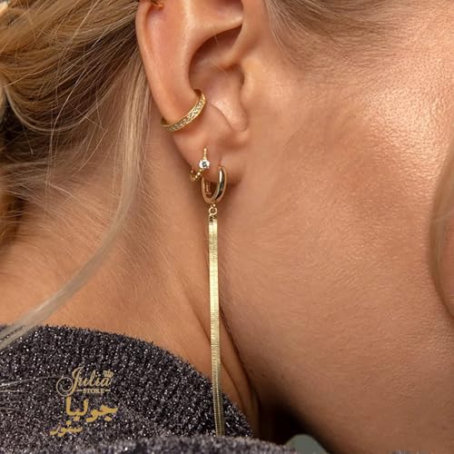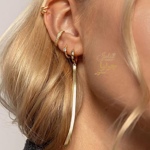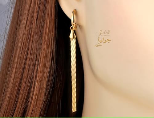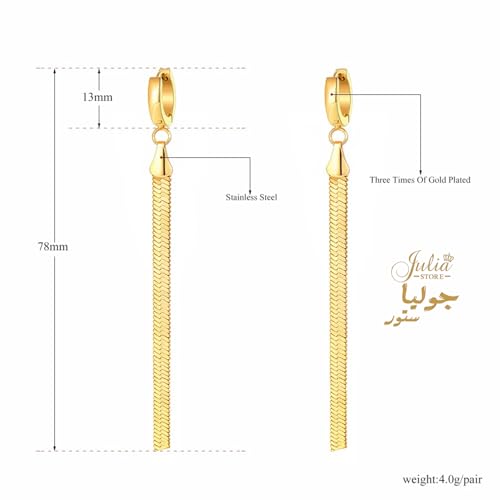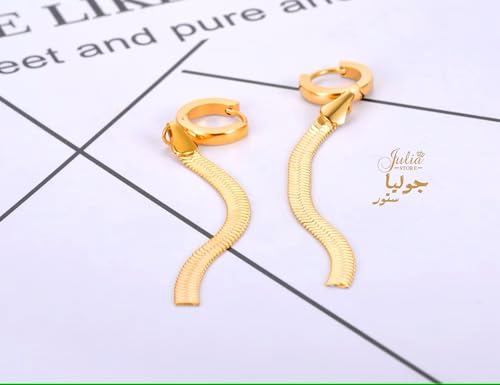 Julia Store - اقراط متدلية من الستانلس ستيل المطلي بالذهب عيار 18 قيراط بتصميم ثعبان عصري متعرج لامع للنساء والبنات المراهقات جوليا ستور