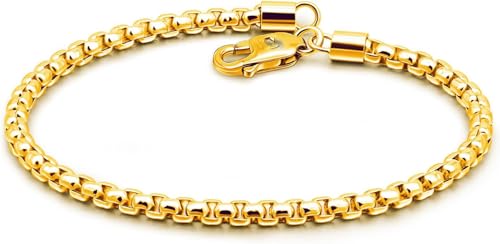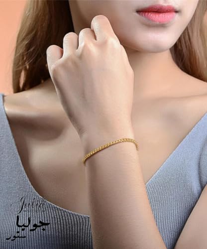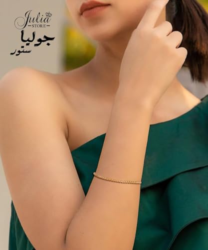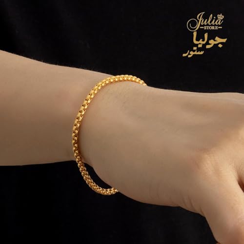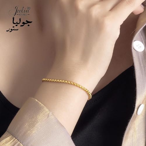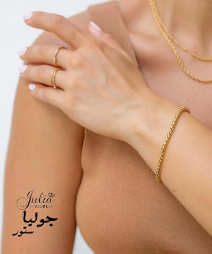 Julia Store - سوار ستانلس ستيل مطلي بالذهب عيار 18 قيراط بتصميم مربع من جوليا ستور للجنسين