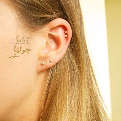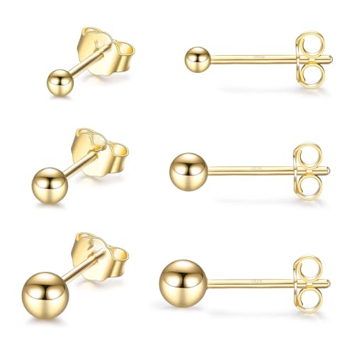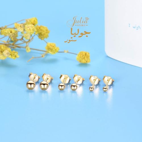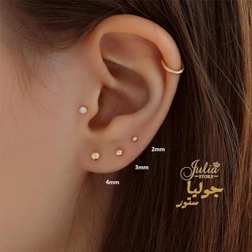 Julia Store - مرصعة-فولاذ مقاوم للصدأ مطلية بالذهب عيار 18 قيراط للنساء والفتيات - 3 أزواج-الحلقان الصغيرة بالزركونيا المكعبة واللؤلؤ (2 ملم، 4 ملم)-جوليا ستور
