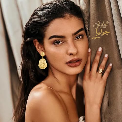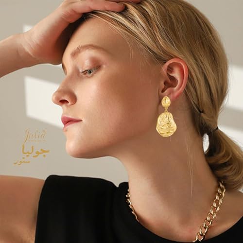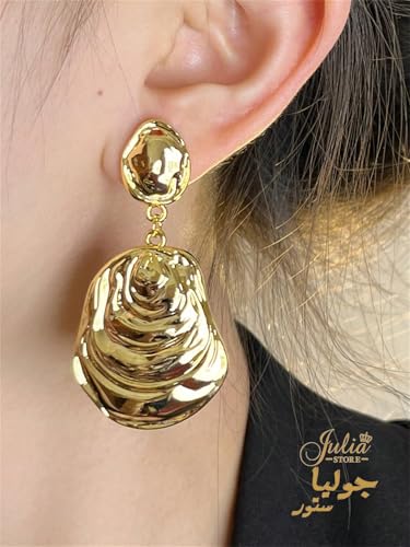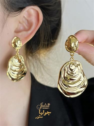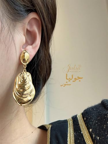 Julia Store - اقراط متدلية عصرية مكتنزة-الستانلس ستيل مطلية بالذهب عيار 18 قيراط للنساء-جوليا ستور، على شكل صدف، شاطئ المحيط والصيف، مجوهرات