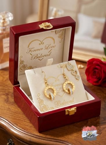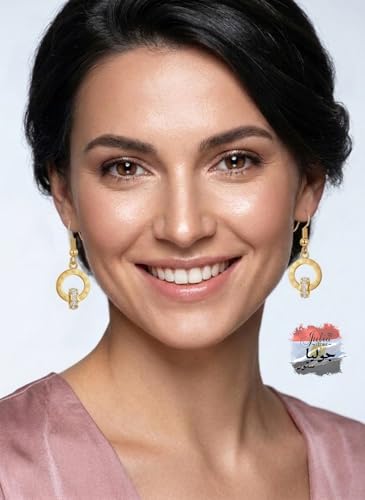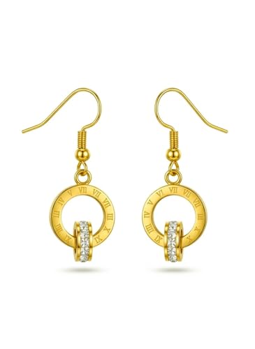 Julia Store - مجوهرات عصرية لطيفة من الستانلس ستيل مطلية بالذهب عيار 18 قيراط من جوليا ستور، مجوهرات رقيقة للحب الابدي والصداقة وارقام رومانية متداخلة مرصعة بالنجوم بتصميم حلقة مزدوجة، اقراط متدلية للنساء، هدية