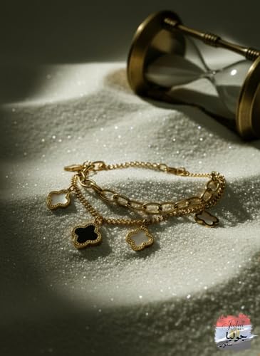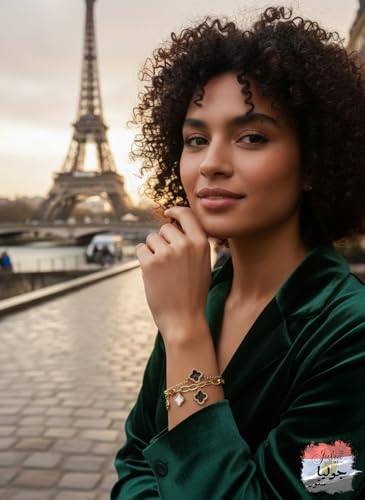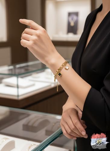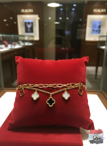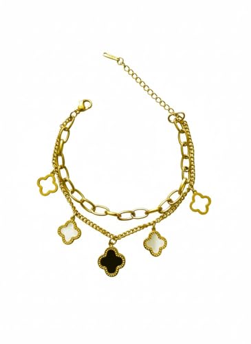 Julia Store - سوار من الستانلس ستيل المطلي بالذهب عيار 18 قيراط من جوليا ستور، عصري وانيق، فاخر لا يفقد بريقه، جمالي، رائع، لطيف، عصري، فاخر للحظ، اربع اوراق برسيم، سوار مجوهرات هدية