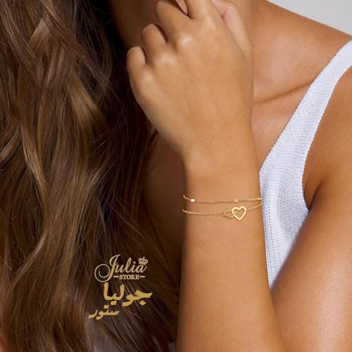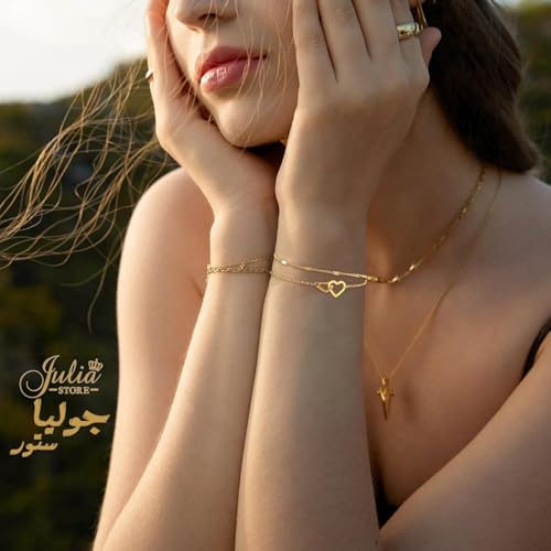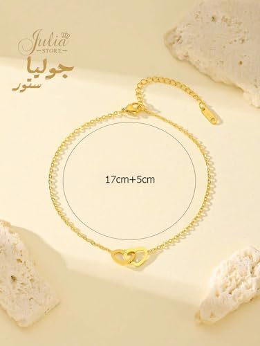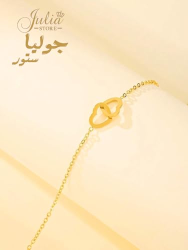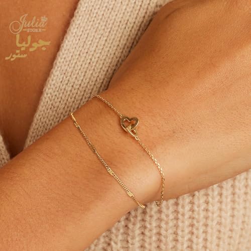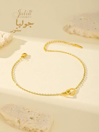 Julia Store - سوار من الستانلس ستيل المطلي بالذهب عيار 18 قيراط من جوليا ستور، سوار عصري فاخر لا يفقد بريقه، سوار سلسلة انيق وفاخر ورائع ولطيف على شكل قلب متشابك