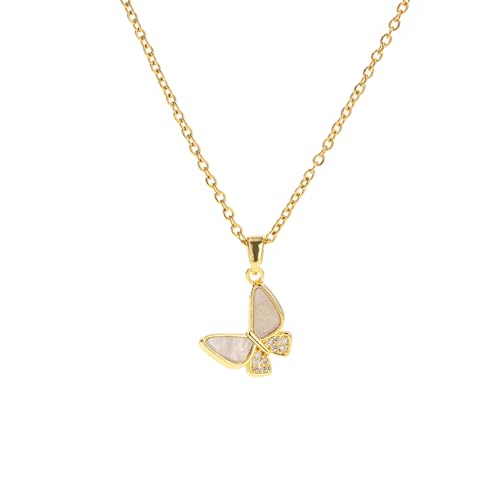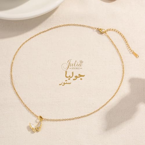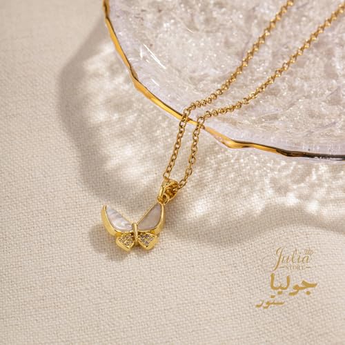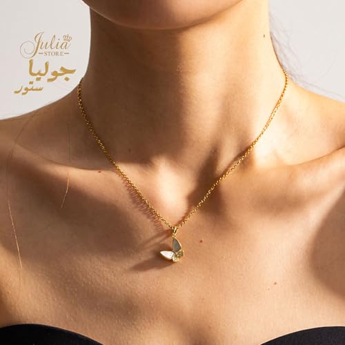 Julia Store - قلادة بدلاية على شكل فراشة مصنوعة من الستانلس ستيل المطلي بالذهب عيار 18 قيراط من جوليا ستور، بتصميم عصري فاخر لا يفقد بريقه، مجوهرات رائعة ولطيفة وشفافة من حجر الزركونيا المكعب