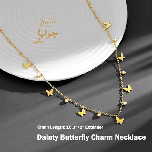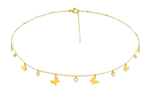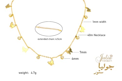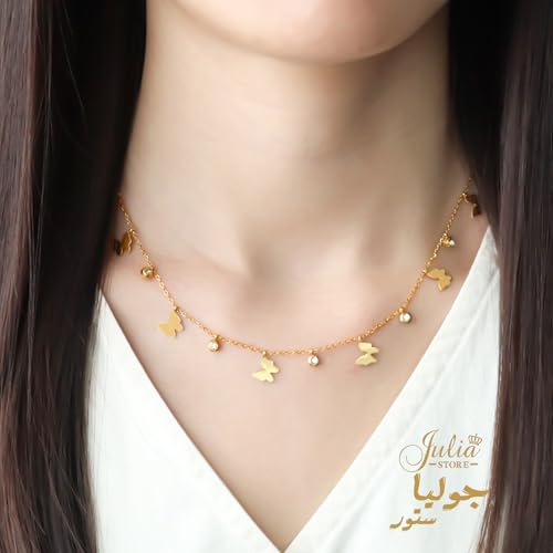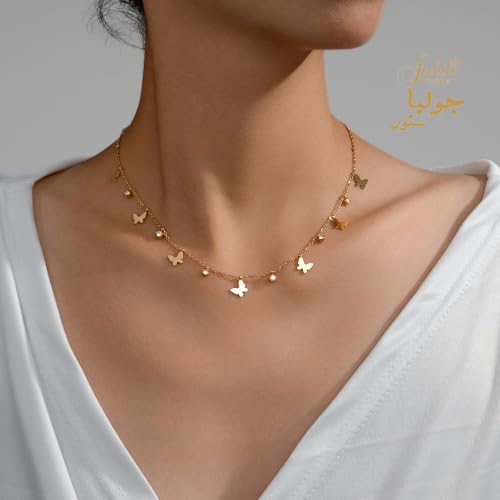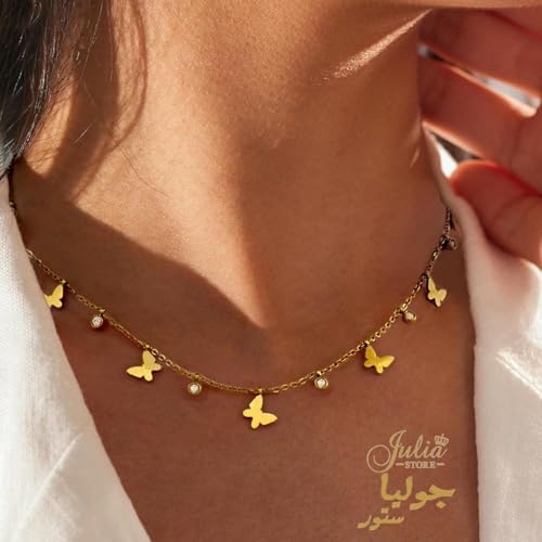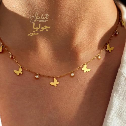 Julia Store - قلادة شوكر من الستانلس ستيل المطلي بالذهب عيار 18 قيراط من جوليا ستور، بتصميم عصري انيق وفاخر لا يفقد بريقه، مجوهرات رائعة وجميلة ومرصعة باحجار الزركونيا المكعبة على شكل فراشة