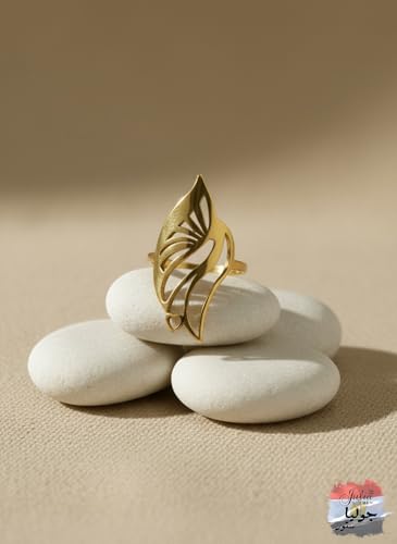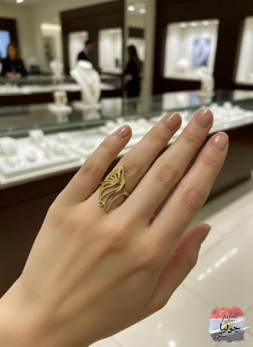 Julia Store - خاتم عصري انيق من الستانلس ستيل المطلي بالذهب عيار 18 قيراط من جوليا ستور، تصميم فاخر لا يفقد بريقه، تصميم جمالي رائع لطيف على شكل قلب مجوف، خاتم كلاسيكي بسيط للنساء