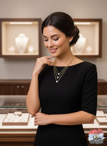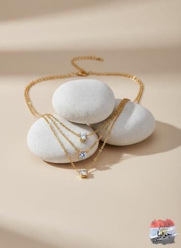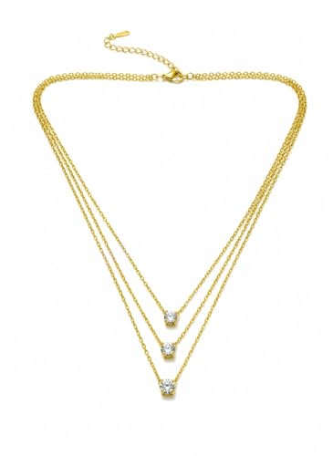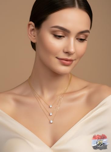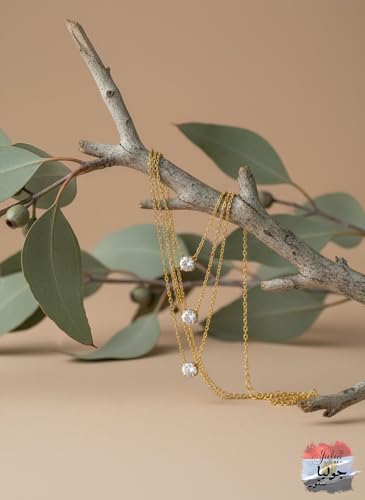 Julia Store - قلادة انيقة من الستانلس ستيل المطلي بالذهب عيار 18 قيراط من جوليا ستور، بتصميم عصري فاخر لا يفقد بريقه، سلسلة انيقة من الزركونيا المكعبة العائمة للنساء، مجوهرات شوكر من ثلاث طبقات