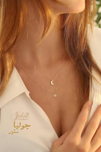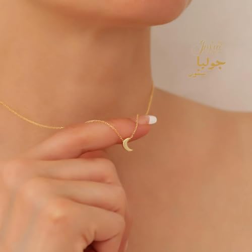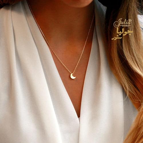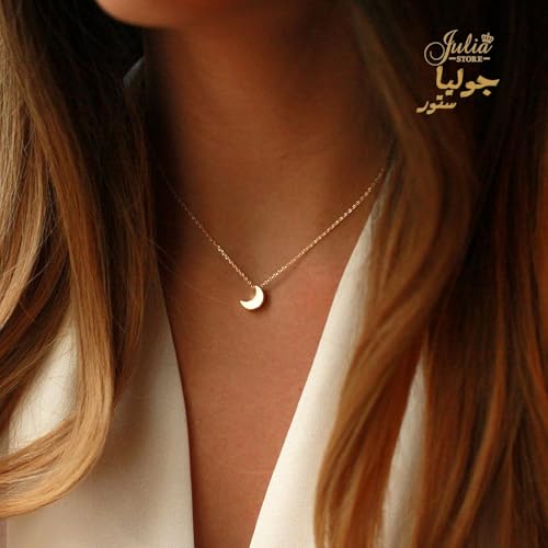 Julia Store - عقد عصري انيق من الستانلس ستيل مطلي بالذهب عيار 18 قيراط جوليا ستور، بقلادة على شكل قمر صغير بتصميم بسيط ورقيق للنساء