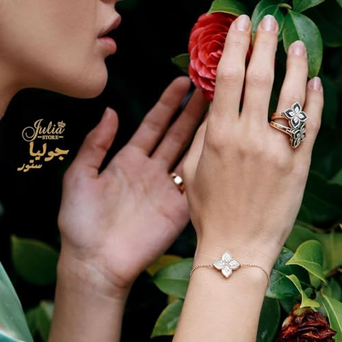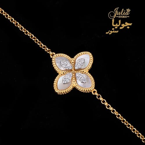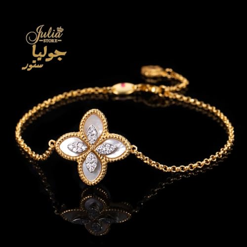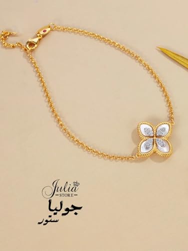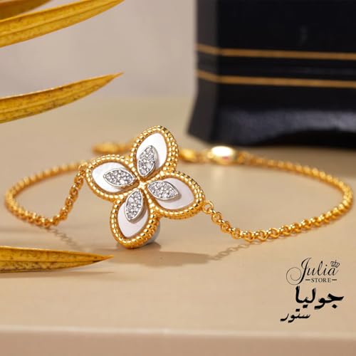 Julia Store - سوار كلاسيكي من الستانلس ستيل المطلي بالذهب عيار 18 قيراط من جوليا ستور بتصميم زهرة الاميرة الأنيق مثل الزركونيا المكعب النمساوي - المجوهرات التي يجب اقتناؤها