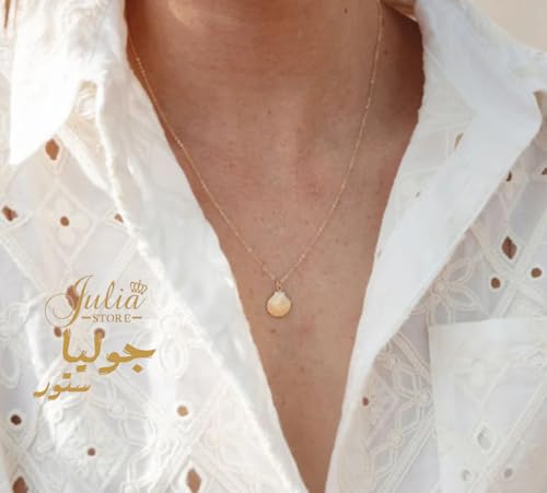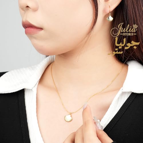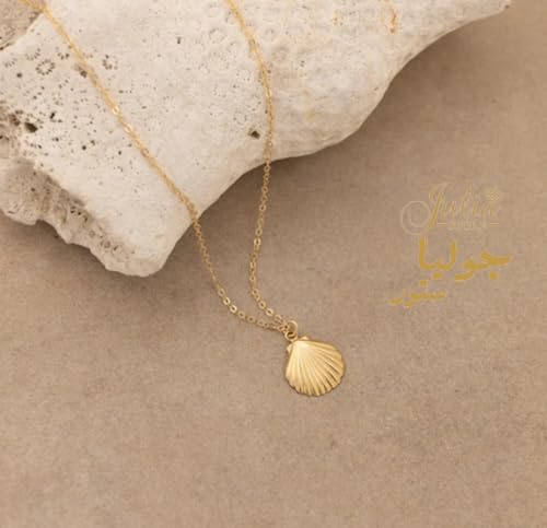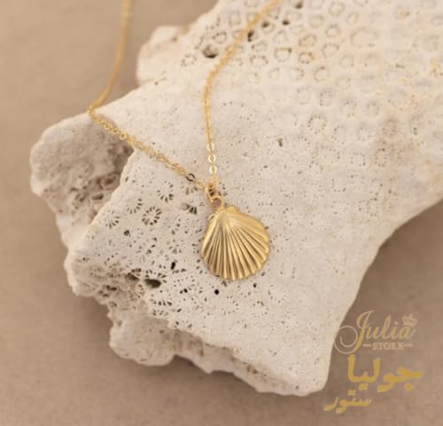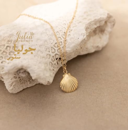 Julia Store - قلادة من الستانلس ستيل المطلي بالذهب عيار 18 قيراط من جوليا ستور، عصرية ورقيقة وانيقة ومقاومة للماء ومصقولة، قلادة صدفة بحر صغيرة من الذهب المصقول، هدية مجوهرات