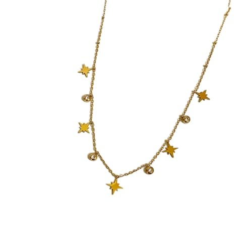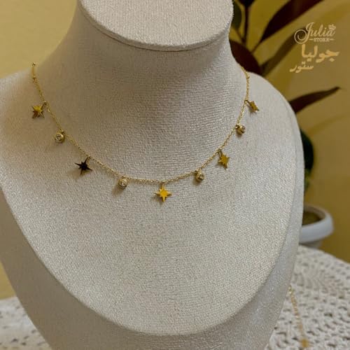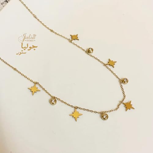 Julia Store - قلادة من الستانلس ستيل المطلي بالذهب عيار 18 قيراط ومرصعة بالزركونيا المكعبة والنجوم العصرية الأنيقة والبسيطة الاكثر مبيعا هدية للنساء جوليا ستور
