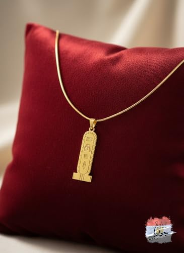 Julia Store - قلادة بدلاية خرطوش مصرية كبيرة مطلية بالذهب عيار 18 قيراط للنساء والرجال من جوليا ستور، سلسلة تميمة الحظ من الستانلس ستيل الصلب، قلادة رقيقة على شكل ثعبان مصري قديم للحماية هدية مجوهرات