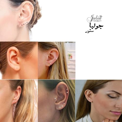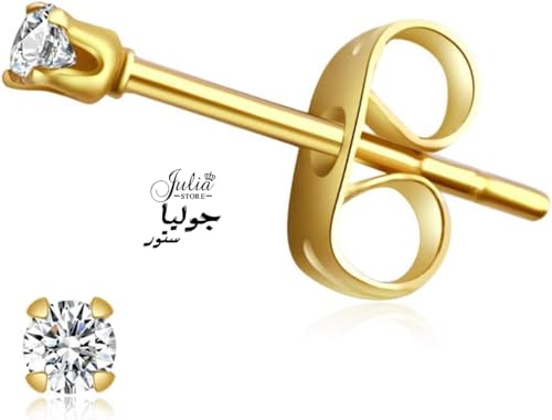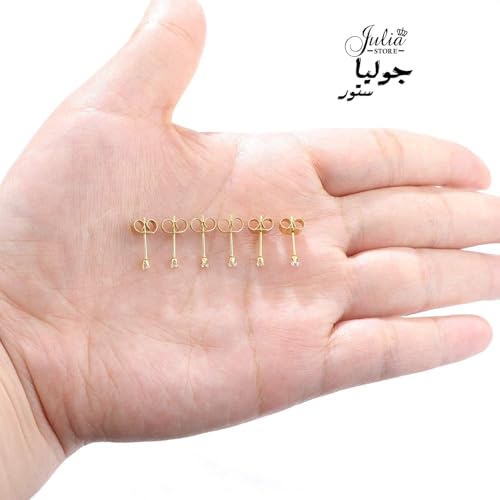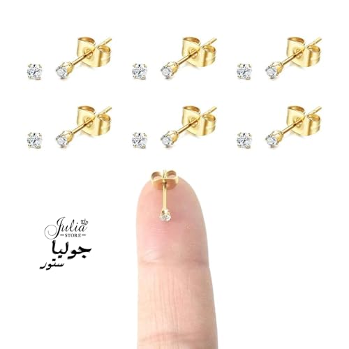 Julia Store - 3 ازواج اقراط صغيرة مرصعة بالزركونيا المكعبة 2 ملم مطلية بالذهب عيار 18 قيراط من الستانلس ستيل 316L ثقب الاذن الصغيرة 20 غرام اصغر للنساء جوليا ستور