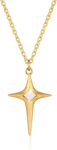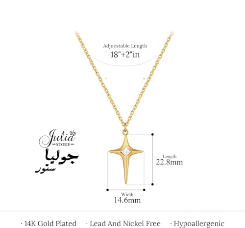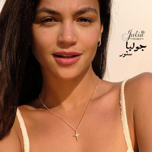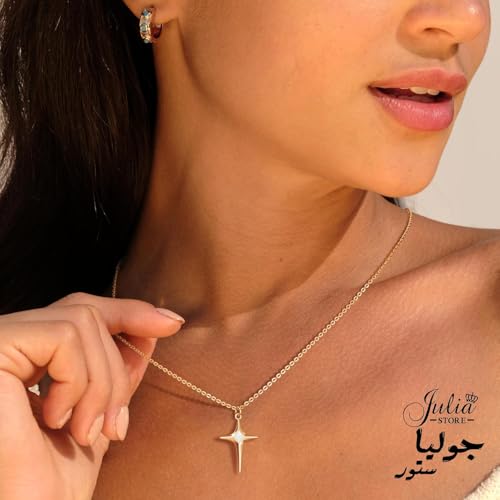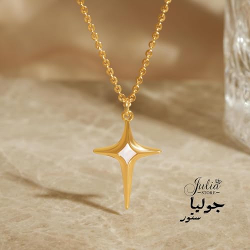 Julia Store - سلسلة بدلاية بتصميم نجمة الشمال ذهبية بسيطة من عرق اللؤلؤ من الفولاذ المقاوم للصدأ مطلية بالذهب الحقيقي عيار 18 قيراط، أنيقة وعصرية فاخرة مبتكرة لبداية الحب والصداقة للنساء من جوليا ستور