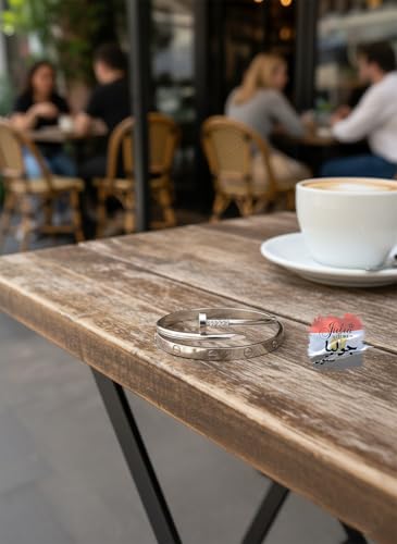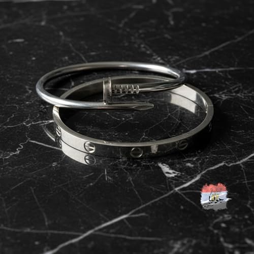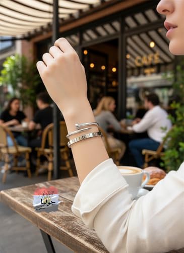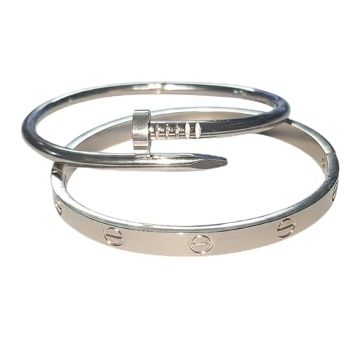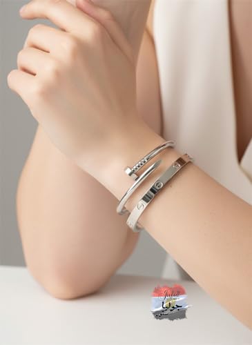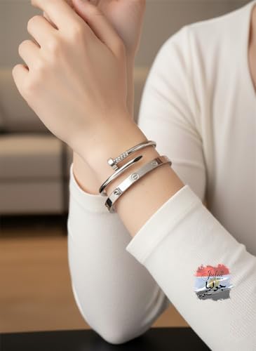 Julia Store - مجموعة اساور حلقية من الستانلس ستيل 316L مطلية بالذهب الابيض عيار 18 قيراط من جوليا ستور بتصميم عصري فاخر رائع للمشاهير والحب، اساور حلقية مطلية بالذهب للاظافر والصداقة، مجموعة مجوهرات هدية